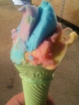 近所の幼稚園で納涼祭をやっていて、妹がレインボーアイスが食べたいと言うので、父親にねだって買ってもらいました。